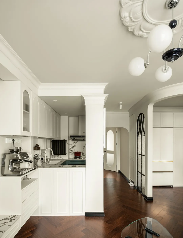 在這使用面積不足64平米的兩居室中,設(shè)計師巧妙融合新藝術(shù)運動精髓,以自然曲線與鮮明色彩,為屋主夫婦量身打造了一個既實用又充滿法式浪漫的溫馨小窩。面對原始布局的不合理,設(shè)計師通過重塑玄關(guān)、打造開放式廚房、調(diào)整客臥布局及衛(wèi)生間三分離等精妙設(shè)計,不僅徹底解決了采光、通風及動線問題,還完美融入了獨立辦公區(qū)與充足儲物空間,滿足了夫婦倆的所有生活與審美需求,讓每一寸空間都煥發(fā)新生。